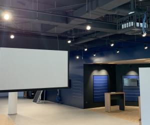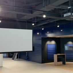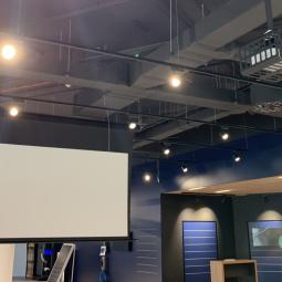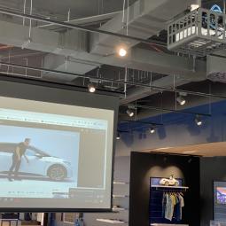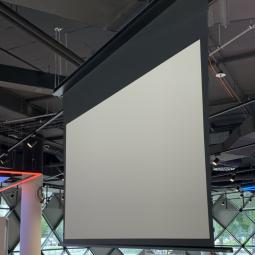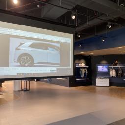 Prodajni salon Porsche Slovenija - ALEJA Namestitev: Elektrodvižno projekcijsko platno Incelling Tensio Adeo 3.500 x 2.275 mm Projektor Stropni nosilec Ozvočenje salona (100V) Galerija
